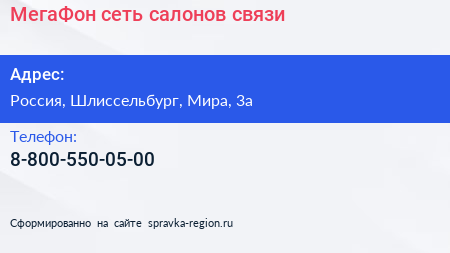 МегаФон, сеть салонов связи по адресу Велес, 3, улица Мира, посёлок имени Морозова, Морозовское городское поселение, Всеволожский район, Ленинградская область, Северо-Западный федеральный округ, 188679, Россия в дальнейшем Организация, размещена в следующих категориях: