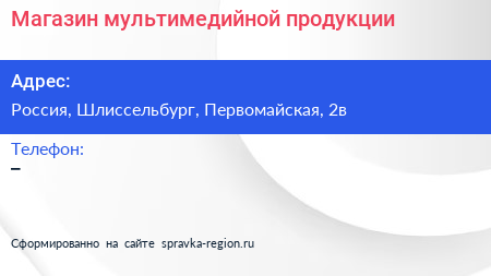 Магазин мультимедийной продукции по адресу 1, Первомайская улица, посёлок имени Морозова, Морозовское городское поселение, Всеволожский район, Ленинградская область, Северо-Западный федеральный округ, 188679, Россия в дальнейшем Организация, размещена в следующих категориях: