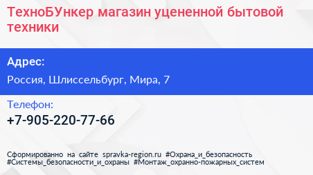 ТехноБУнкер, магазин уцененной бытовой техники по адресу ТРК Морозовский, 7, улица Мира, посёлок имени Морозова, Морозовское городское поселение, Всеволожский район, Ленинградская область, Северо-Западный федеральный округ, 188679, Россия в дальнейшем Организация, размещена в следующих категориях: