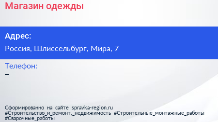 Магазин одежды по адресу ТРК Морозовский, 7, улица Мира, посёлок имени Морозова, Морозовское городское поселение, Всеволожский район, Ленинградская область, Северо-Западный федеральный округ, 188679, Россия в дальнейшем Организация, размещена в следующих категориях: