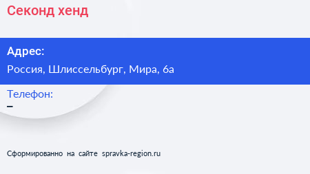 Секонд-хенд по адресу улица Мира, посёлок имени Морозова, Морозовское городское поселение, Всеволожский район, Ленинградская область, Северо-Западный федеральный округ, 188679, Россия в дальнейшем Организация, размещена в следующих категориях: