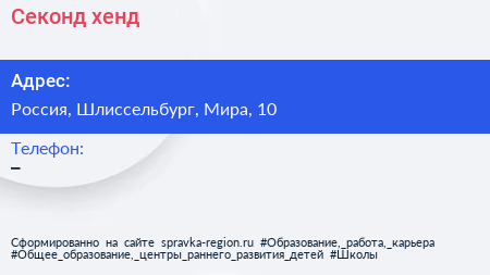 Секонд-хенд по адресу 10, улица Мира, посёлок имени Морозова, Морозовское городское поселение, Всеволожский район, Ленинградская область, Северо-Западный федеральный округ, 188679, Россия в дальнейшем Организация, размещена в следующих категориях: