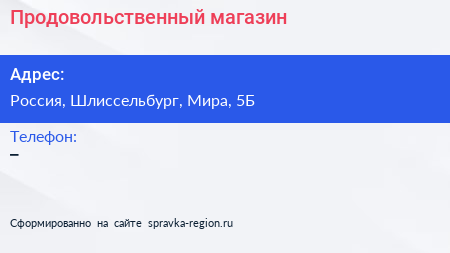 Адрес: Ленинградская область, Шлиссельбург, улица 1 Мая, 2г