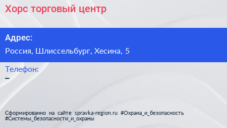 Хорс, торговый центр по адресу Хорс, 5, улица Хесина, посёлок имени Морозова, Морозовское городское поселение, Всеволожский район, Ленинградская область, Северо-Западный федеральный округ, 188679, Россия в дальнейшем Организация, размещена в следующих категориях: