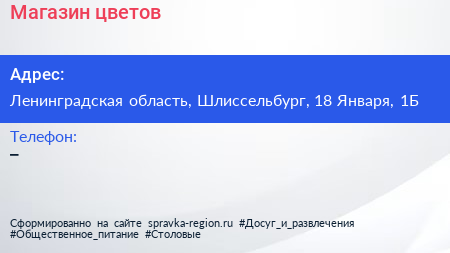 Магазин цветов по адресу Ленинградская область, Шлиссельбург, 18 Января, 1Б в дальнейшем Организация, размещена в следующих категориях: