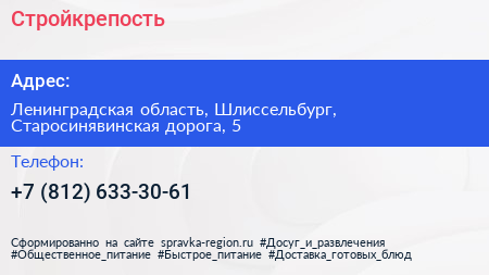 Стройкрепость по адресу Ленинградская область, Шлиссельбург, Старосинявинская дорога, 5 в дальнейшем Организация, размещена в следующих категориях: