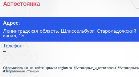 Автостоянка по адресу Ленинградская область, Шлиссельбург, Староладожский канал, 1Б в дальнейшем Организация, размещена в следующих категориях: