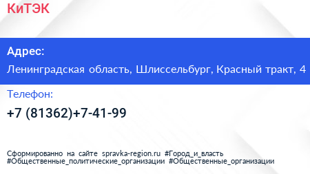 КиТЭК по адресу Ленинградская область, Шлиссельбург, Красный тракт, 4 в дальнейшем Организация, размещена в следующих категориях: