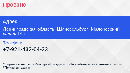 Прованс по адресу Ленинградская область, Шлиссельбург, Малоневский канал, 14Б в дальнейшем Организация, размещена в следующих категориях:
