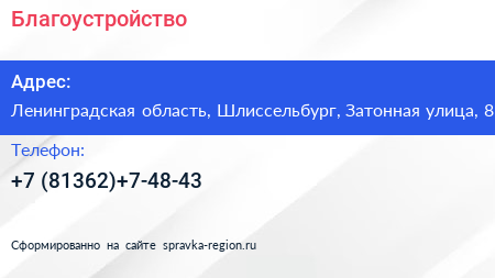 Благоустройство по адресу Ленинградская область, Шлиссельбург, Затонная улица, 8 в дальнейшем Организация, размещена в следующих категориях: