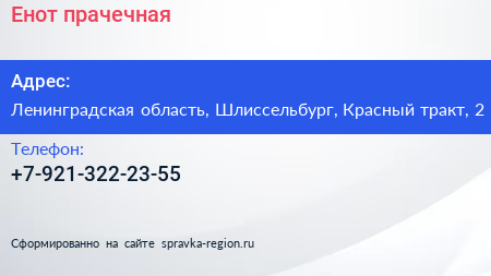 Енот, прачечная по адресу Ленинградская область, Шлиссельбург, Красный тракт, 2 в дальнейшем Организация, размещена в следующих категориях: