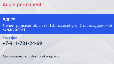 Angie permanent по адресу Ленинградская область, Шлиссельбург, Староладожский канал, 24 к1 в дальнейшем Организация, размещена в следующих категориях: