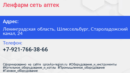 Ленфарм, сеть аптек по адресу Ленинградская область, Шлиссельбург, Староладожский канал, 24 в дальнейшем Организация, размещена в следующих категориях: