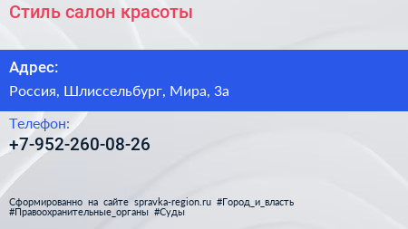 Стиль, салон красоты по адресу 3А, улица Мира, посёлок имени Морозова, Морозовское городское поселение, Всеволожский район, Ленинградская область, Северо-Западный федеральный округ, 188679, Россия в дальнейшем Организация, размещена в следующих категориях: