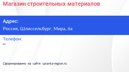 Адрес: Ленинградская область, Шлиссельбург, Красный тракт, 14