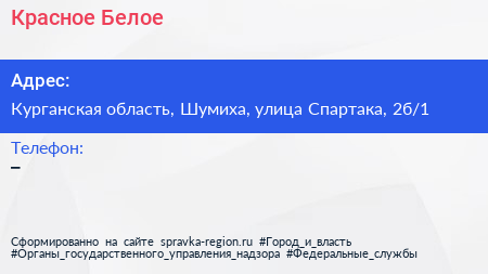 Красное & Белое по адресу Курганская область, Шумиха, улица Спартака, 2б/1 в дальнейшем Организация, размещена в следующих категориях: