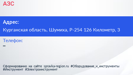 АЗС по адресу Курганская область, Шумиха, Р-254 126 Километр, 3 в дальнейшем Организация, размещена в следующих категориях: