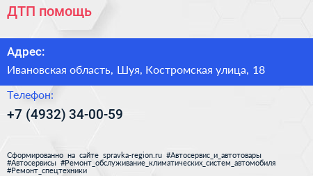 ДТП-помощь по адресу Ивановская область, Шуя, Костромская улица, 18 в дальнейшем Организация, размещена в следующих категориях: