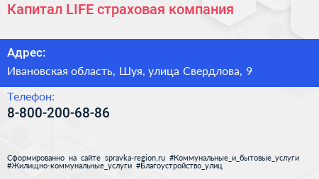 Капитал LIFE, страховая компания по адресу Ивановская область, Шуя, улица Свердлова, 9 в дальнейшем Организация, размещена в следующих категориях: