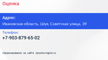 Оценка по адресу Ивановская область, Шуя, Советская улица, 39 в дальнейшем Организация, размещена в следующих категориях: