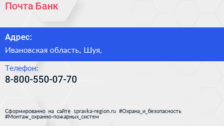 Почта Банк по адресу Ивановская область, Шуя, в дальнейшем Организация, размещена в следующих категориях: