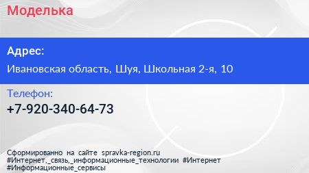 Моделька по адресу Ивановская область, Шуя, Школьная 2-я, 10 в дальнейшем Организация, размещена в следующих категориях: