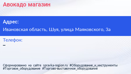 Авокадо, магазин по адресу Ивановская область, Шуя, улица Маяковского, 3а в дальнейшем Организация, размещена в следующих категориях: