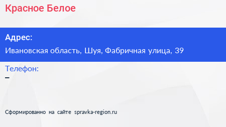 Красное & Белое по адресу Ивановская область, Шуя, Фабричная улица, 39 в дальнейшем Организация, размещена в следующих категориях: