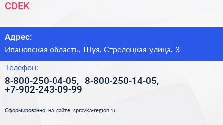 CDEK по адресу Ивановская область, Шуя, Стрелецкая улица, 3 в дальнейшем Организация, размещена в следующих категориях: