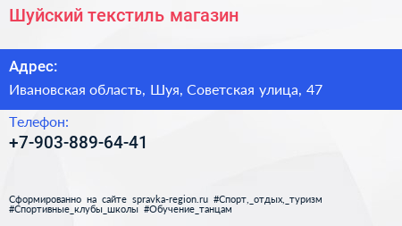 Шуйский текстиль, магазин по адресу Ивановская область, Шуя, Советская улица, 47 в дальнейшем Организация, размещена в следующих категориях: