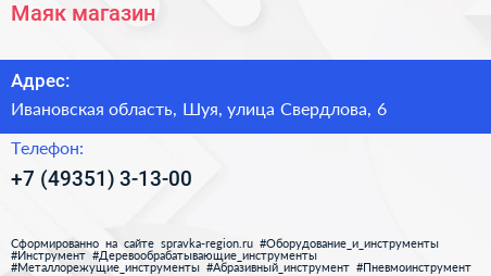 Маяк, магазин по адресу Ивановская область, Шуя, улица Свердлова, 6 в дальнейшем Организация, размещена в следующих категориях: