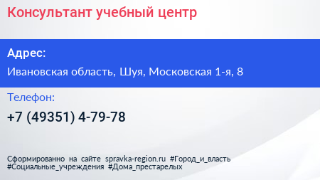 Консультант, учебный центр по адресу Ивановская область, Шуя, Московская 1-я, 8 в дальнейшем Организация, размещена в следующих категориях: