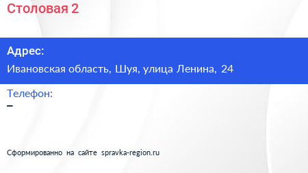Столовая №2 по адресу Ивановская область, Шуя, улица Ленина, 24 в дальнейшем Организация, размещена в следующих категориях: