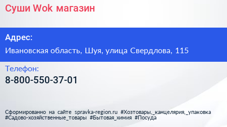 Суши Wok, магазин по адресу Ивановская область, Шуя, улица Свердлова, 115 в дальнейшем Организация, размещена в следующих категориях: