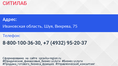 СИТИЛАБ по адресу Ивановская область, Шуя, Вихрева, 75 в дальнейшем Организация, размещена в следующих категориях:
