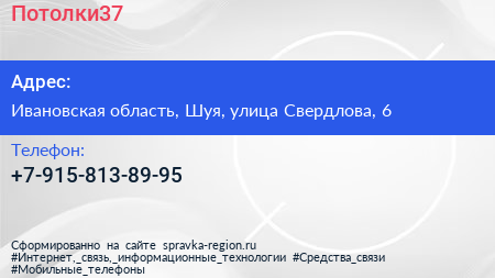Потолки37 по адресу Ивановская область, Шуя, улица Свердлова, 6 в дальнейшем Организация, размещена в следующих категориях:
