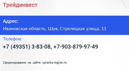 Трейдинвест по адресу Ивановская область, Шуя, Стрелецкая улица, 11 в дальнейшем Организация, размещена в следующих категориях: