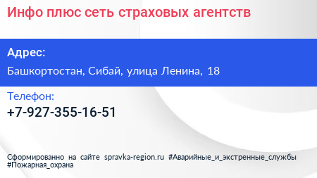 Инфо-плюс, сеть страховых агентств по адресу Башкортостан, Сибай, улица Ленина, 18 в дальнейшем Организация, размещена в следующих категориях: