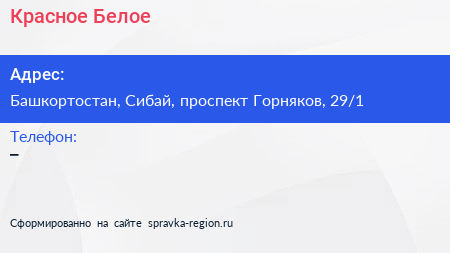 Красное & Белое по адресу Башкортостан, Сибай, проспект Горняков, 29/1 в дальнейшем Организация, размещена в следующих категориях: