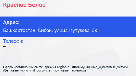 Красное & Белое по адресу Башкортостан, Сибай, улица Кутузова, 3к в дальнейшем Организация, размещена в следующих категориях: