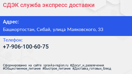 СДЭК, служба экспресс-доставки по адресу Башкортостан, Сибай, улица Маяковского, 33 в дальнейшем Организация, размещена в следующих категориях: