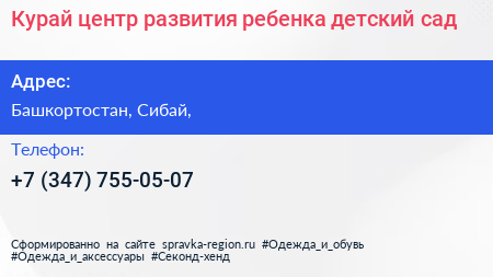 Курай, центр развития ребенка-детский сад по адресу Башкортостан, Сибай, в дальнейшем Организация, размещена в следующих категориях: