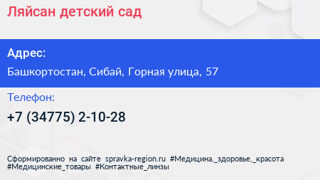 Ляйсан, детский сад по адресу Башкортостан, Сибай, Горная улица, 57 в дальнейшем Организация, размещена в следующих категориях: