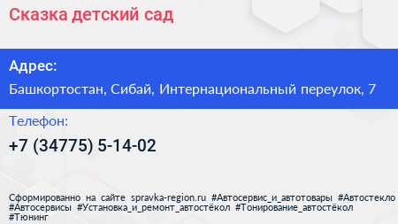 Сказка, детский сад по адресу Башкортостан, Сибай, Интернациональный переулок, 7 в дальнейшем Организация, размещена в следующих категориях: