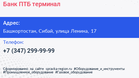 Банк ПТБ, терминал по адресу Башкортостан, Сибай, улица Ленина, 17 в дальнейшем Организация, размещена в следующих категориях: