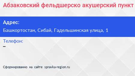 Абзаковский фельдшерско-акушерский пункт по адресу Башкортостан, Сибай, Гадельшинская улица, 1 в дальнейшем Организация, размещена в следующих категориях: