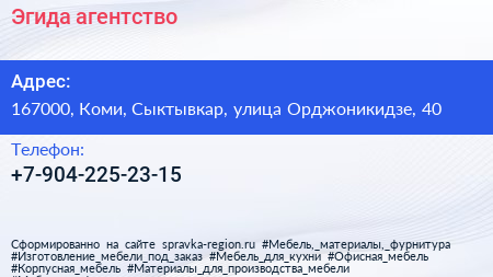 Эгида, агентство по адресу 167000, Коми, Сыктывкар, улица Орджоникидзе, 40 в дальнейшем Организация, размещена в следующих категориях: