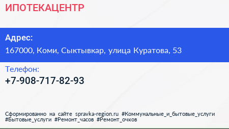 ИПОТЕКАЦЕНТР по адресу 167000, Коми, Сыктывкар, улица Куратова, 53 в дальнейшем Организация, размещена в следующих категориях: