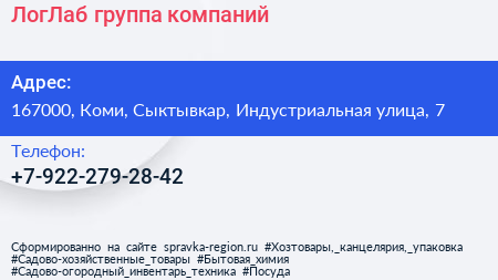 ЛогЛаб, группа компаний по адресу 167000, Коми, Сыктывкар, Индустриальная улица, 7 в дальнейшем Организация, размещена в следующих категориях: