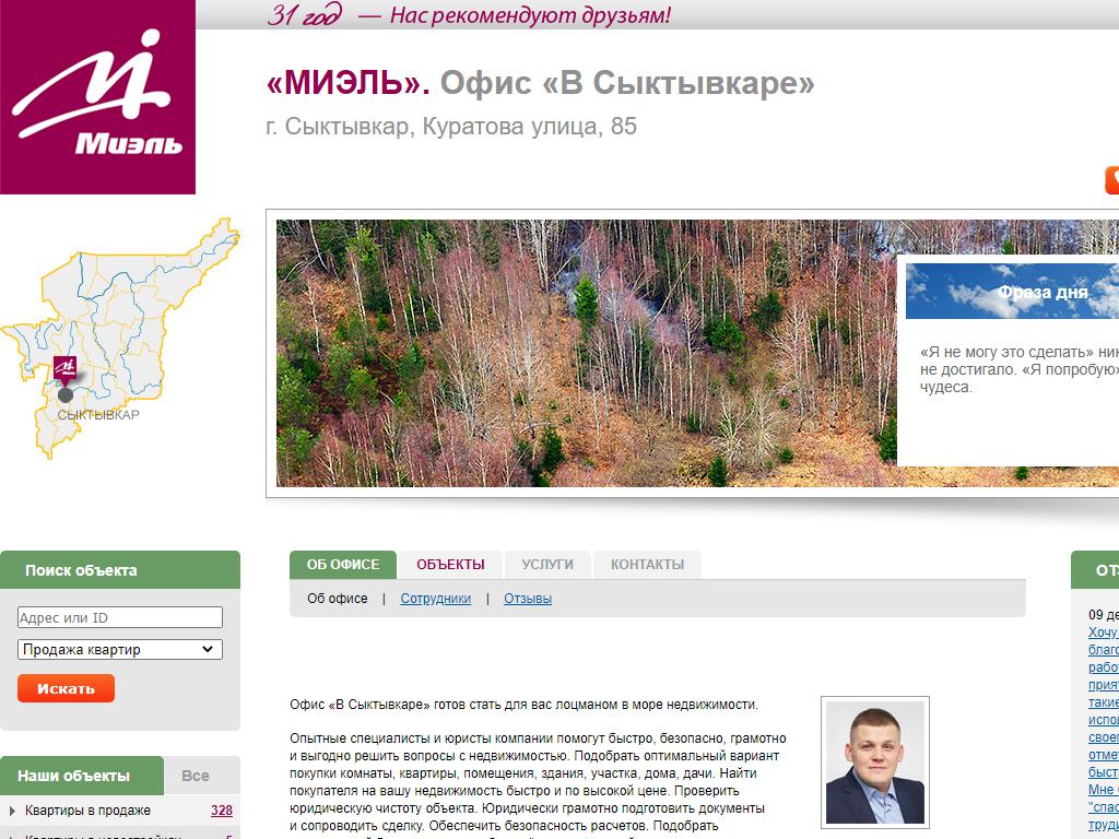 МИЭЛЬ, сеть офисов недвижимости по адресу 167000, Коми, Сыктывкар, улица Куратова, 85 в дальнейшем Организация, размещена в следующих категориях: